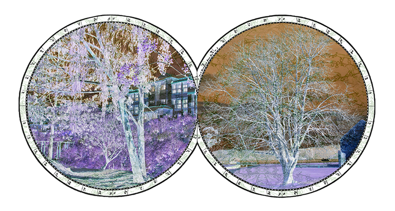 In this work I have used circumferential markings similar to Mercator to denote mapping but have inserted images from specific longitudinal references to reveal glimpses of the land that lies thereupon. Working from my own photographic images I have worked to reveal an alternate view of the everyday which, hopefully, shows some of the mystery that still exists at the bottom of the world. The images have been digitally printed then partially over painted with acrylic medium and pigment.