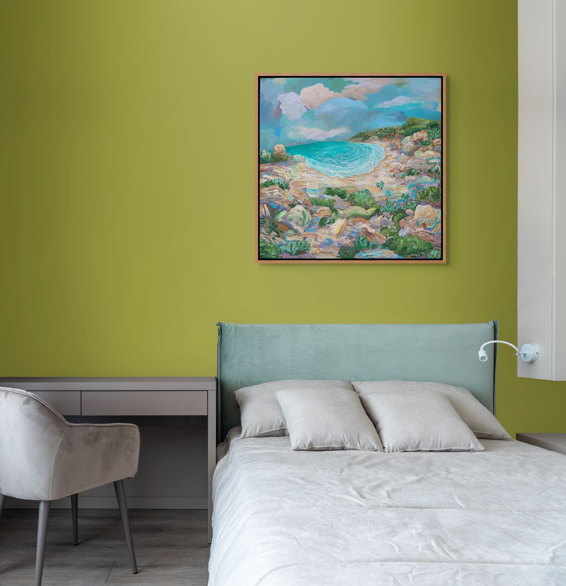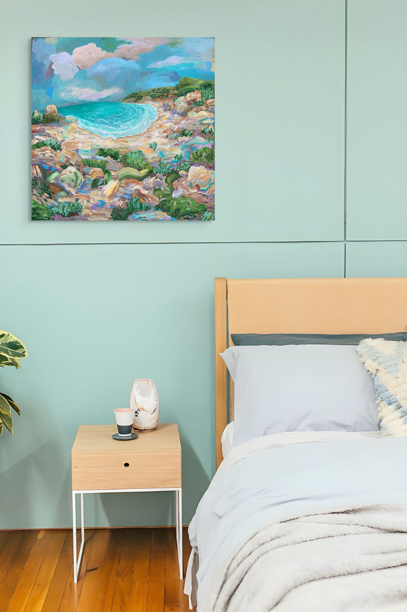 Acrylic on canvas framed in light timber