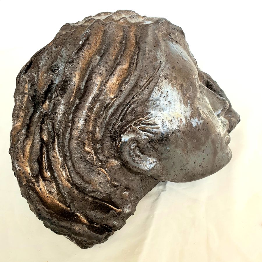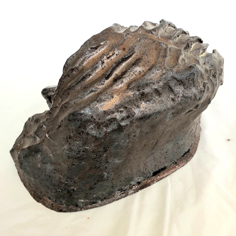 The current of the Derwent River. Made of sculpture clay and glazed with bronze glazes. Stoneware fired.