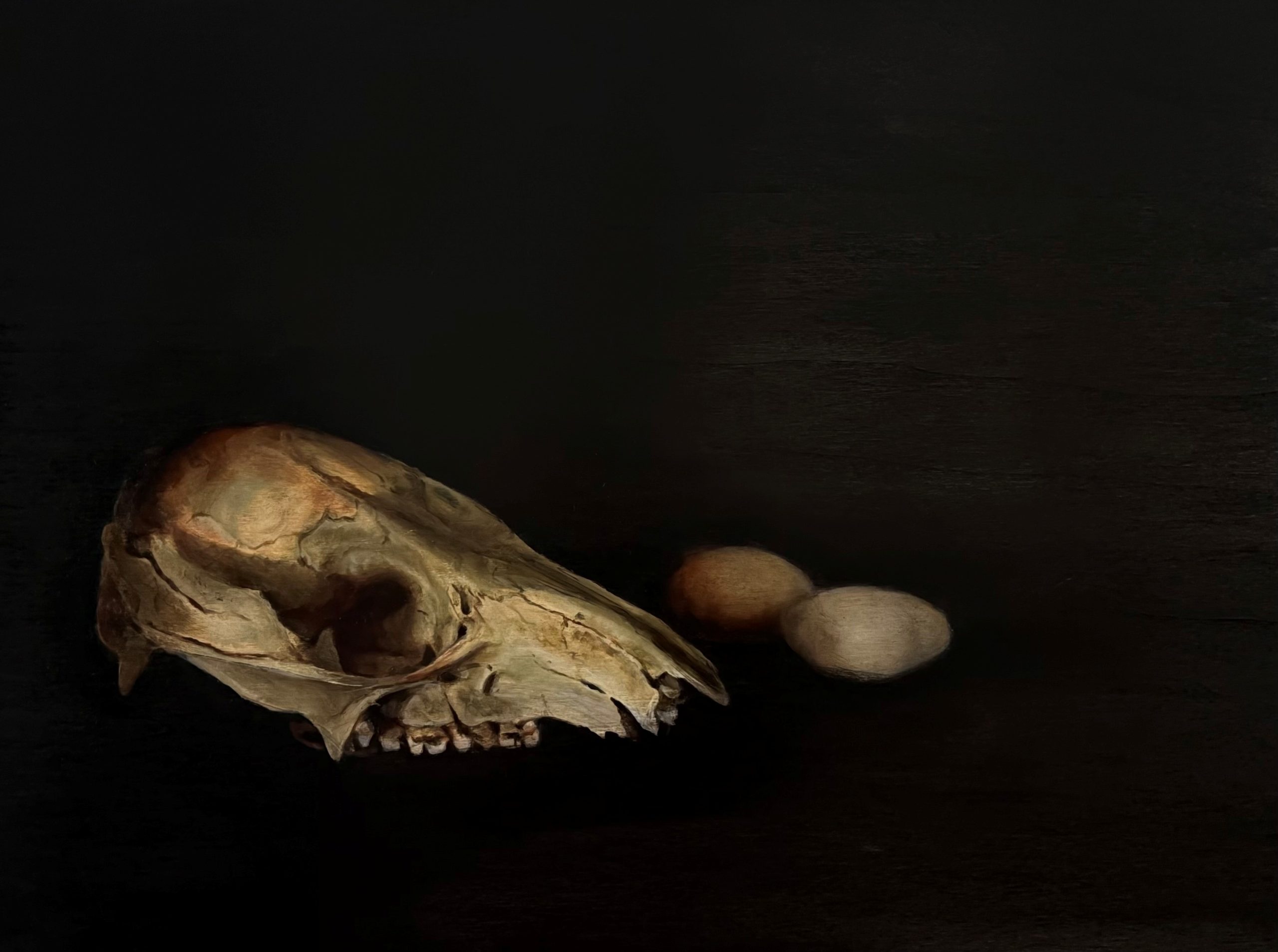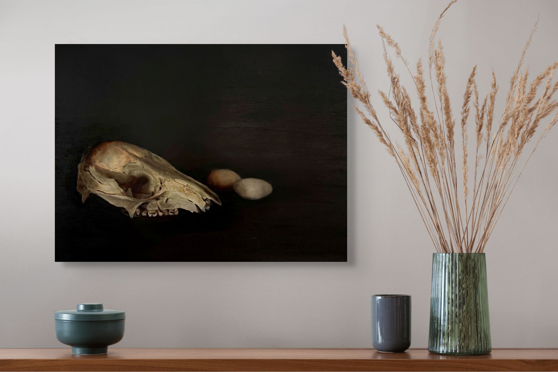 Oil on plywood panel, 46 x 61 cm. Pademelon Skull and Beach Stones - Mcgregor quantity Add to cart Categories: 2D, Artist, Caroline McGregor, Exhibition, Still